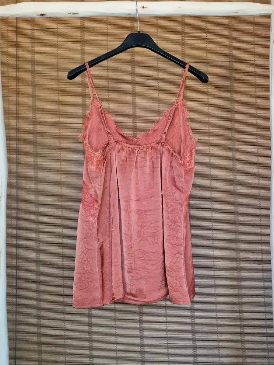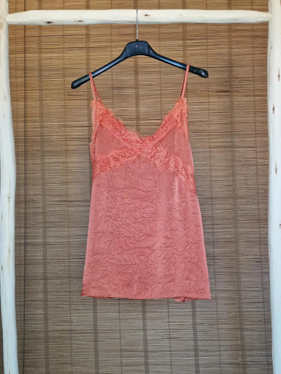 Top lencero de satén suave con tirantes regulables y encaje en el pecho. Ligero, elegante y adaptable. Talla única.
